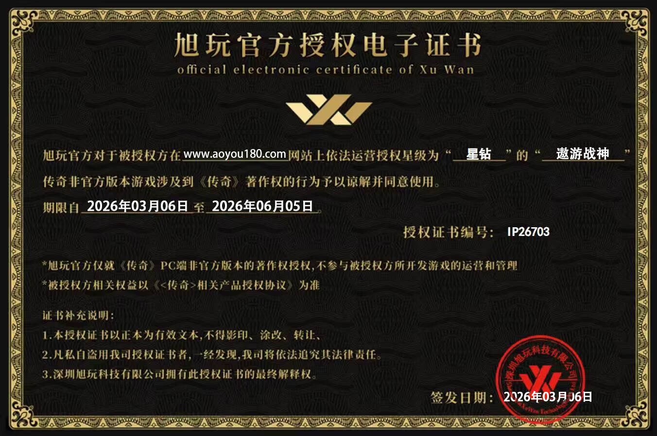 遨游战神-双授权资质公示-旭玩集团+安徽传麒智达正规双授权